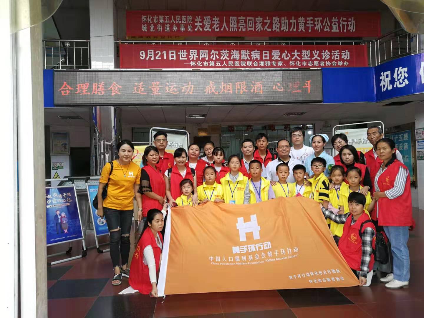 2019年9月21日是世界第26个阿尔茨海默病日,在怀化市第五人民医院门诊大楼内,市五医院、城北街道办事处与怀化市志愿者协会联合举办了“9月21日世界阿尔茨海默病大型义诊活动”和“关爱老人照亮回家路.黄手环行动”,来自市五医院、市志愿者协会和鹤城公益小天使25名志愿者以及来自湘雅二医院、市五医院的4名专家共29人参加了本次活动。