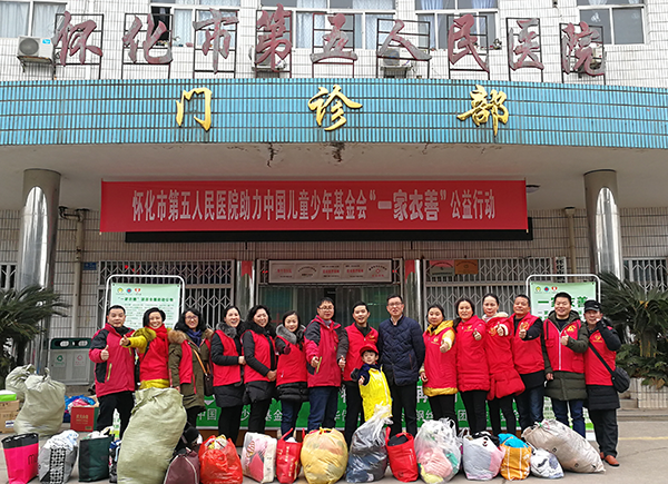 “一家衣善” 旧衣物回收项目是经国家民政部备案的公益项目。市五医院与怀化市志愿者协会联合开展“一家衣善”旧衣物环保回收公益活动,旨在倡导公众提高节约意识、环保意识和生态意识的同时,为老、少、边、穷贫困地区群众送上爱心和温暖。