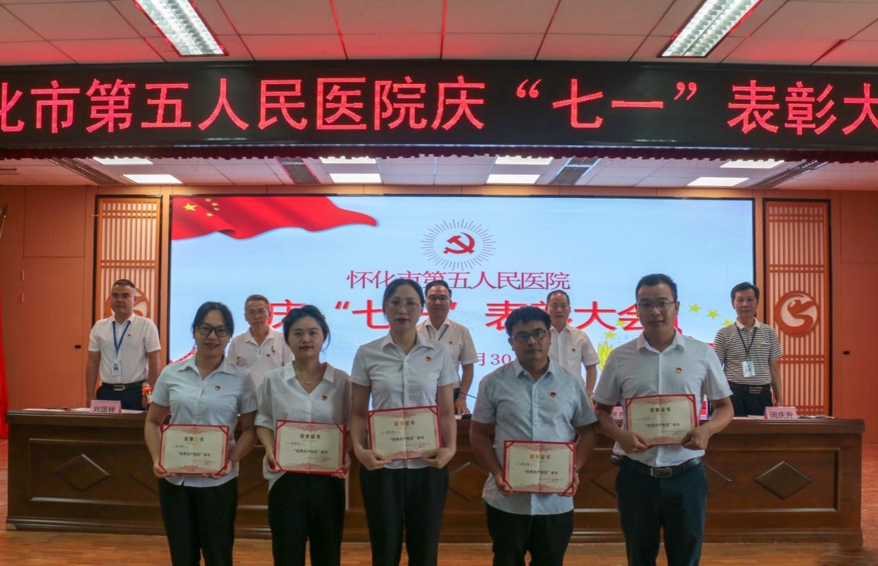 在庄严雄壮的国歌声中,表彰大会拉开帷幕,新党员进行入党宣誓,老党员重温入党誓词,新党员代表李建成发言。院党委副书记、院长张在田宣读七一表彰决定,大会表彰了怀化市“最美疫情防控志愿者”张永良以及在医院改革发展各项事业作出突出贡献的优秀共产党员、优秀党务工作者和先进基层党组织,为4名光荣在党50年老党员颁发了纪念章。通过表彰先进,激励广大共产党员、全院干部职工弘扬伟大建党精神,开拓创新、锐意进取,为谱写医院高质量跨越式发展恢弘篇章不懈奋斗,以优异成绩迎接党的二十大胜利召开。