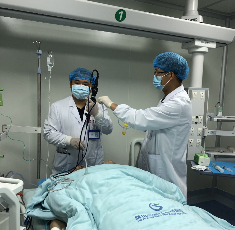 4月21日,市五医院重症医学科在舒适麻醉下成功为一名左肺肺癌并左主支气管完全阻塞患者行纤维支气管镜检查加灌洗术。